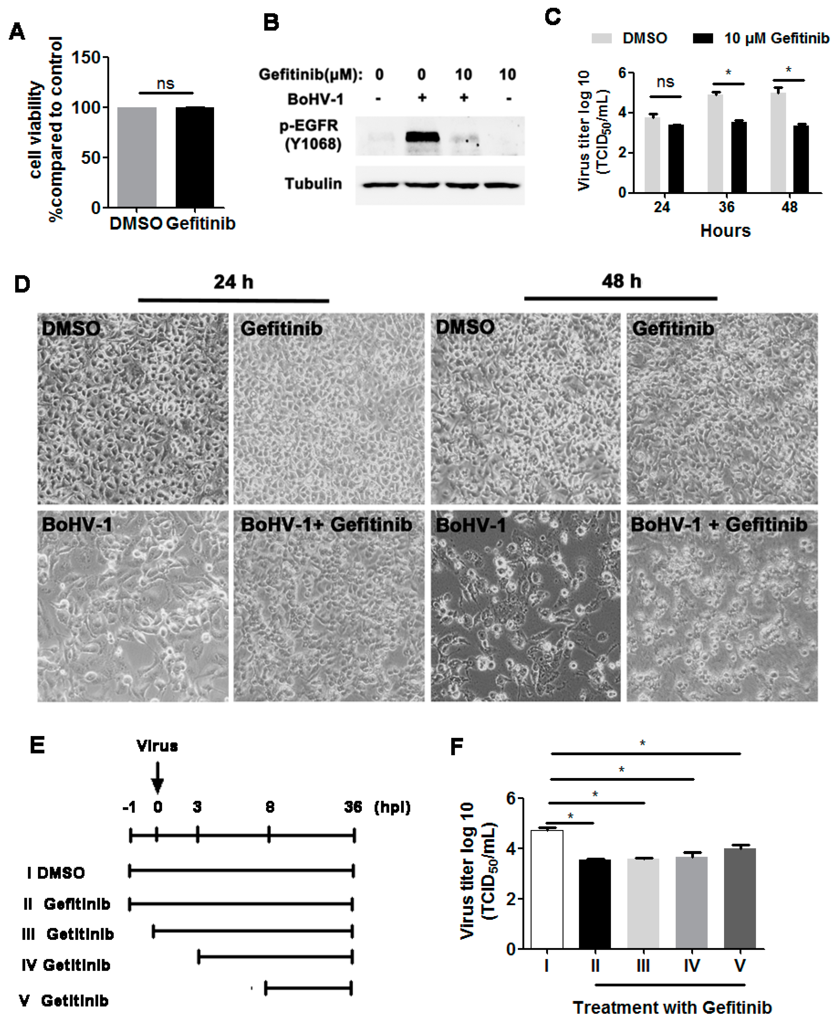 3.2. EGFR Inhibitor Decreased BoHV-1 Infection in Cell Culture