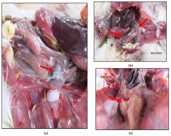 - Gross, W.B. Lesions of Hemorrhagic Enteritis. Avian Dis. 1967, 11, 684. [Google Scholar] [CrossRef] [PubMed]