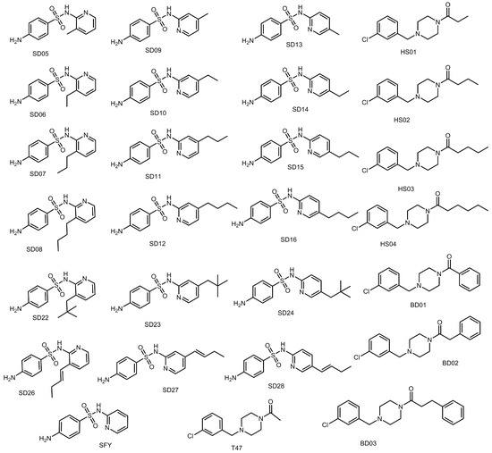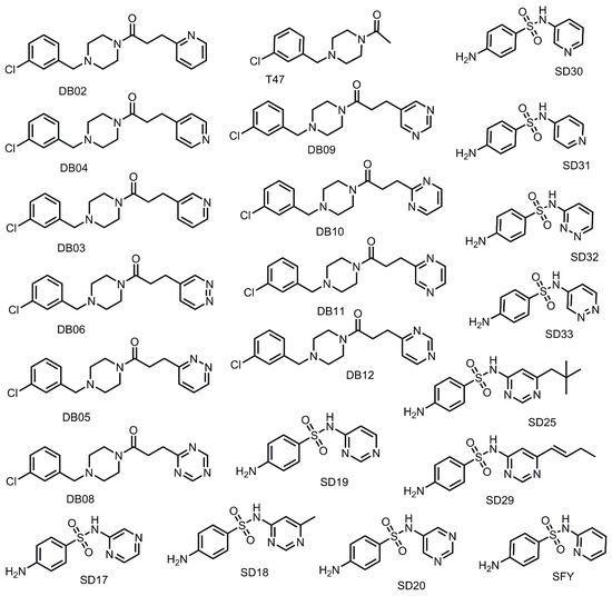 Structures of T47 and SFY compound derivatives designed for nitrogen heterocycle dataset.