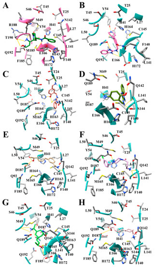 - Zhang, L.; Lin, D.; Sun, X.; Curth, U.; Drosten, C.; Sauerhering, L.; Becker, S.; Rox, K.; Hilgenfeld, R. Crystal structure of SARS-CoV-2 main protease provides a basis for design of improved α-ketoamide inhibitors. Science 2020, 368, 409–412. [Google Scholar] [CrossRef] [PubMed]