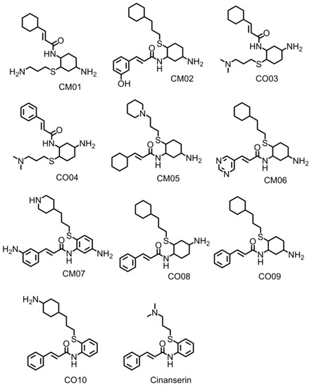 3.9. Optimization of Cinanserin Hit for SARS-CoV-2 Mpro