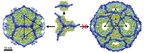 - Dokland, T. Freedom and restraint: Themes in virus capsid assembly. Structure 2000, 8, R157–R162. [Google Scholar] [CrossRef]