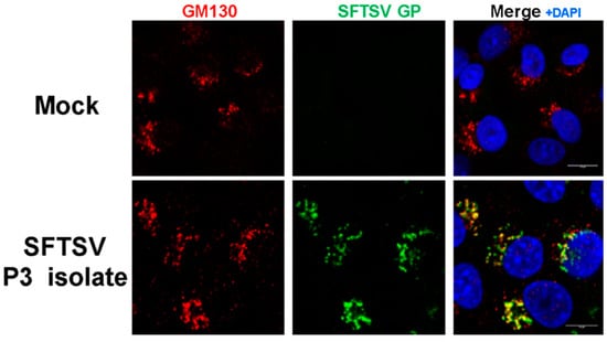 3.2.2. SFTSV Particles Co-Located with the Golgi Apparatus in Vero E6 Cells