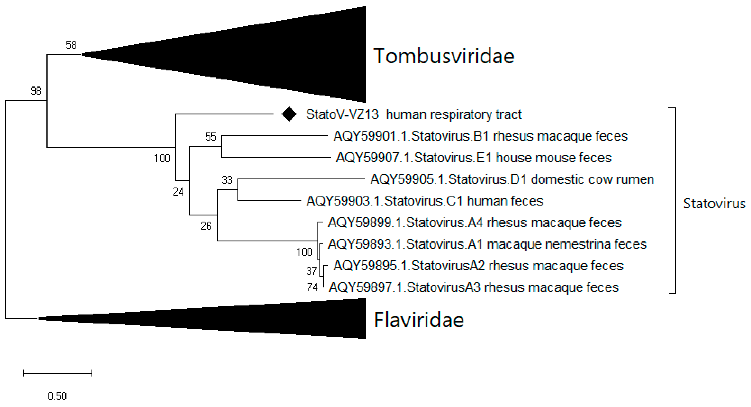 | 7 | 24 | Novel statovirus (StatoV-VZ13) | Yes | 91 | 1018 | 42.5 | 24.6 |