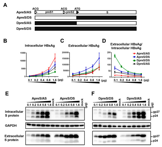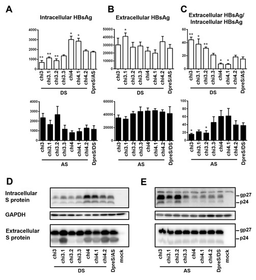 The following are available online at https://www.mdpi.com/1999-4915/12/9/967/s1, Figure S1: Three pairs of chimeric constructs between ApreS/AS and ApreS/DS to narrow down the determinants for efficient HBsAg secretion, Figure S2: Five pairs of shorter chimeric constructs between ApreS/AS and ApreS/DS to further map the determinants for efficient HBsAg secretion.