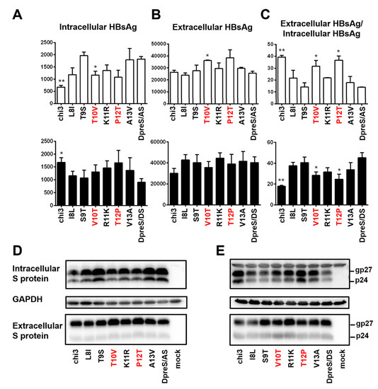 - Ito, K.; Qin, Y.L.; Guarnieri, M.; Garcia, T.; Kwei, K.; Mizokami, M.; Zhang, J.M.; Li, J.S.; Wands, J.R.; Tong, S.P. Impairment of Hepatitis B Virus Virion Secretion by Single-Amino-Acid Substitutions in the Small Envelope Protein and Rescue by a Novel Glycosylation Site. J. Virol. 2010, 84, 12850–12861. [Google Scholar] [CrossRef]