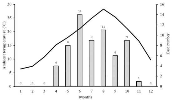 - Choi, S.J.; Park, S.W.; Bae, I.G.; Kim, S.H.; Ryu, S.Y.; Kim, H.A.; Jang, H.C.; Hur, J.; Jun, J.B.; Jung, Y.; et al. Severe Fever with Thrombocytopenia Syndrome in South Korea, 2013–2015. PLoS Negl. Trop. Dis. 2016, 10, e0005264. [Google Scholar] [CrossRef] [PubMed]