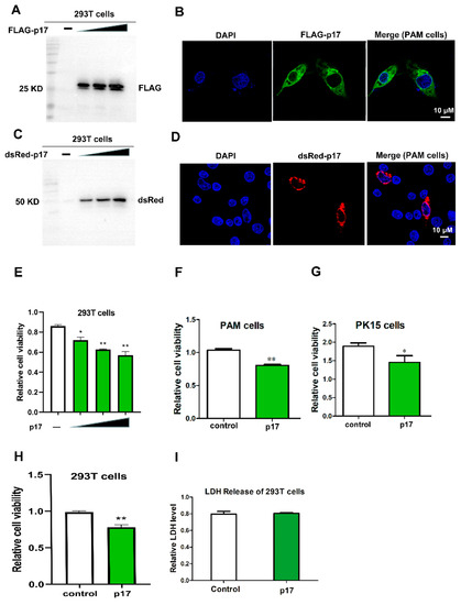 3.1. The Expression of p17 Protein in 293T and PAM Cells