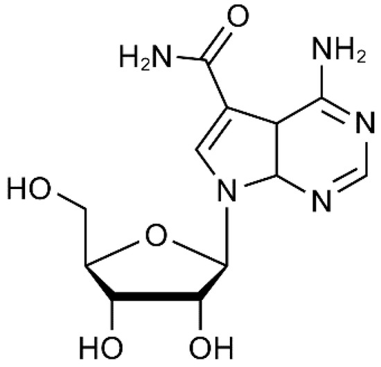 Sangivamycin: 4-amino-7-(β-D-ribofuranosyl)pyrrolo[2,3-d]pyrimidine-5-carboxamide (C12H15N5O5); Chemical Abstract Service #18417-89-5; molecular weight: 309.27.