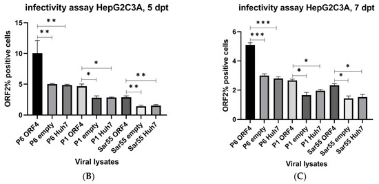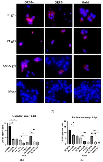 4.4. Transfection of ORF4+, ORF4– Huh7 Cells and Regular Huh7 S10-3 Cells