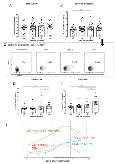 3.1. Activation of CLEC5A+ Monocytes and T Lymphocytes after YF17DD Vaccination