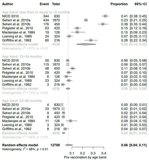 3.2.1. Meta-Analysis of the Estimate of Rotavirus Infection during the Pre-Vaccination Period