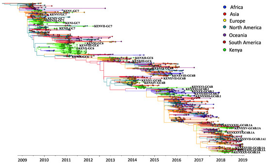3.3. Patterns of Introduction of A(H1N1)pdm09 Viruses into Kenya and Local Transmission Clusters