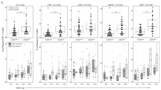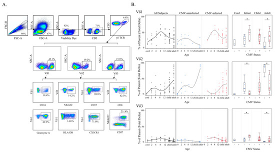 3.1. γδ T Cell Frequencies Change with Age and Are Expanded in Infants Experiencing Primary CMV Infection