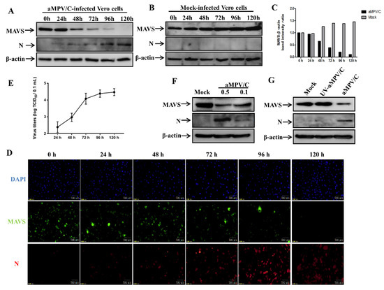 3.1. aMPV/C Infection Induces MAVS Reduction in Vero Cells