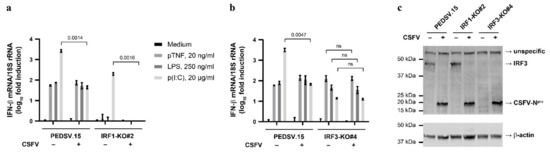 3.6. CSFV Infection Does Not Interfere with TNF- and LPS-Mediated IFN-β mRNA Induction in PEDSV.15 Cells