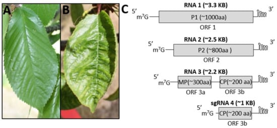 - Pallas, V.; Aparicio, F.; Herranz, M.C.; Sanchez-Navarro, J.A.; Scott, S.W. The molecular biology of ilarviruses. Adv. Virus. Res. 2013, 87, 139–181. [Google Scholar] [CrossRef] [PubMed]