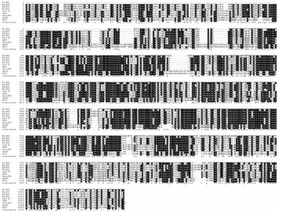 Identity between FoAV1 ORF2-encoded protein and equivalent proteins of other proposed alternaviruses.
