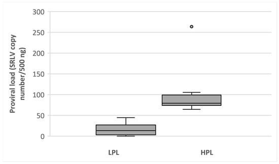 Proviral load distribution among goats with low (LPL) and high (HPL) proviral load. HPL—high proviral load, LPL—low proviral load.