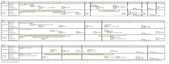 Case summary of secondary cases of SARS-CoV-2 positivity among contacts of patients with re-positive SARS-CoV-2. Abbreviations: Adm, admission; PCR, polymerase chain reaction; PRNT, plaque reduction neutralization test.