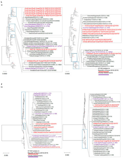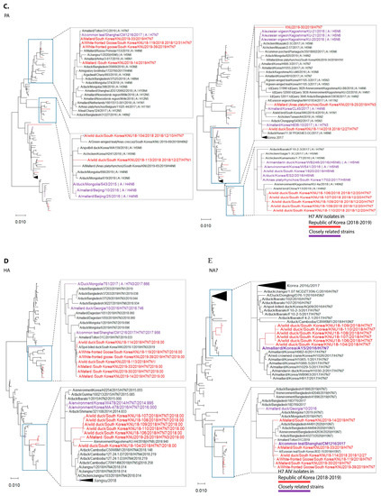 3.2. Molecular Characteristics of the H7 Isolates of 2018–2019 from the Republic of Korea