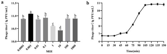 2.4. Determination of the Optimal Multiplicity of Infection and One-Step Growth Curve