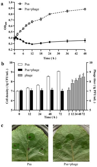 Liu, Y.; Liu, M.; Hu, R.; Bai, J.; He, X.; Jin, Y. Isolation of the Novel Phage PHB09 and Its Potential Use against the Plant Pathogen Pseudomonas syringae pv. actinidiae. Viruses 2021, 13, 2275. https://doi.org/10.3390/v13112275