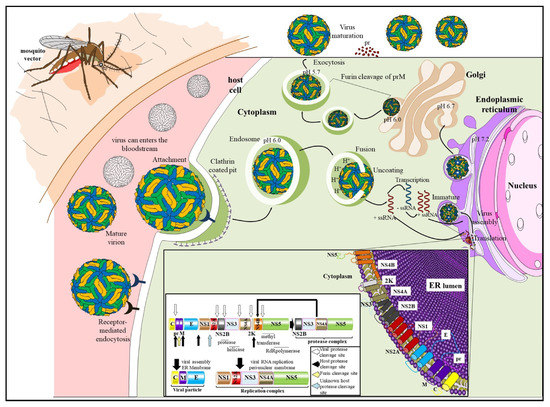 - Rothan, H.A.; Kumar, M. Role of Endoplasmic Reticulum-Associated Proteins in Flavivirus Replication and Assembly Complexes. Pathogens 2019, 8, 148. [Google Scholar] [CrossRef]