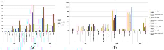 Comparison of RAS prevalence with other studies. (A) RAS prevalence compared to studies of Japan [] and Spain []; (B) Detailed comparison of RAS prevalence for each DAA treatment to study results of Japan [].