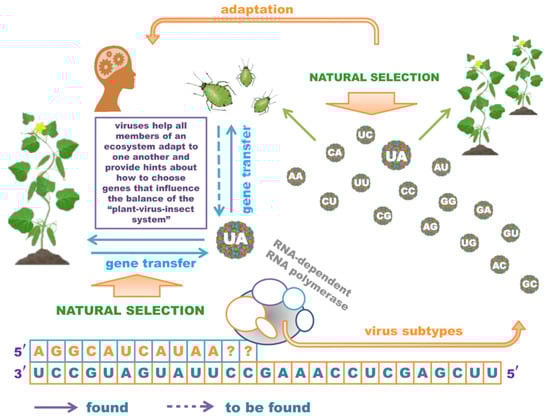 Oberemok, V.V.; Puzanova, Y.V.; Kubyshkin, A.V.; Kamenetsky-Goldstein, R. Top Three Strategies of ss(+)RNA Plant Viruses: Great Opportunists and Ecosystem Tuners with a Small Genome. Viruses 2021, 13, 2304. https://doi.org/10.3390/v13112304