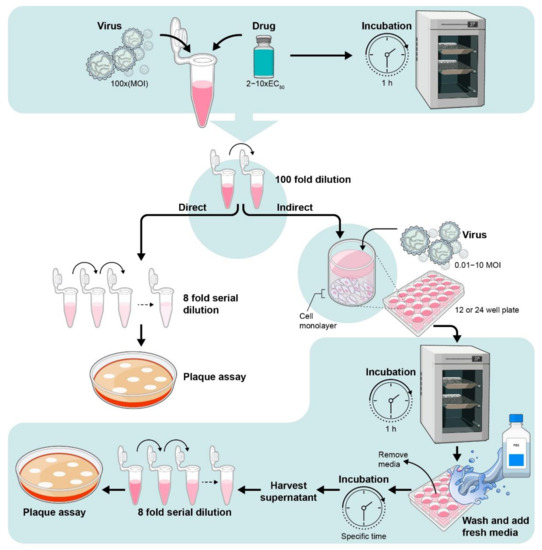 The purpose is to determine if the drug directly affects the virus prior to cell infection (Figure 6) [29,56].