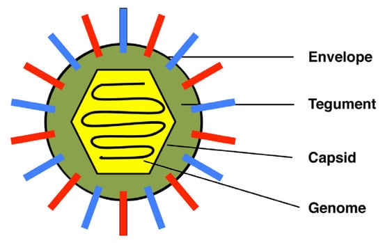 - Owen, D.J.; Crump, C.M.; Graham, S.C. Tegument Assembly and Secondary Envelopment of Alphaherpesviruses. Viruses 2015, 7, 5084–5114. [Google Scholar] [CrossRef]
