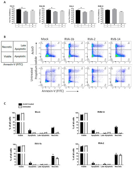 3.3. Apoptosis Induction by ActoD Inhibits RVs of Species A, but Not Species B