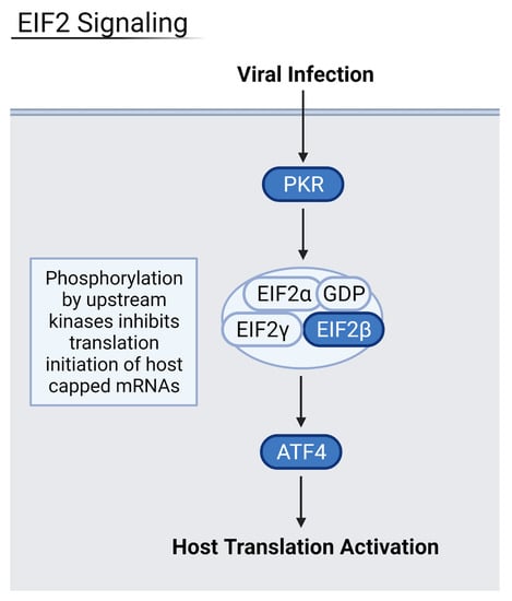 - Liu, Y.; Wang, M.; Cheng, A.; Yang, Q.; Wu, Y.; Jia, R.; Liu, M.; Zhu, D.; Chen, S.; Zhang, S.; et al. The role of host eIF2α in viral infection. Virol. J. 2020, 17, 112. [Google Scholar] [CrossRef]