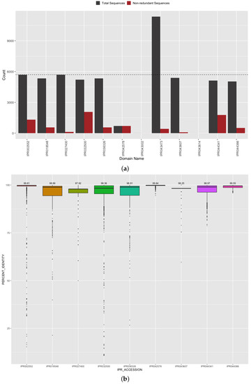 - Jones, P.; Binns, D.; Chang, H.Y.; Fraser, M.; Li, W.; McAnulla, C.; McWilliam, H.; Maslen, J.; Mitchell, A.; Nuka, G.; et al. InterProScan 5: Genome-scale protein function classification. Bioinformatics 2014, 30, 1236–1240. [Google Scholar] [CrossRef] [Green Version]