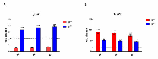 3.5. RW and RR Strains Display a Different LpxR and TLR4 Gene Expression Level