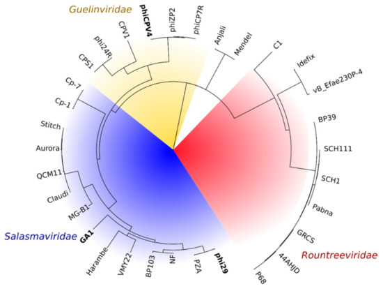 - Carrascosa, J.L.; Camacho, A.; Moreno, F.; Jimenez, F.; Mellado, R.P.; Vinuela, E.; Salas, M. Bacillus subtilis phage phi29. Characterization of gene products and functions. Eur. J. Biochem. 1976, 66, 229–241. [Google Scholar] [CrossRef]