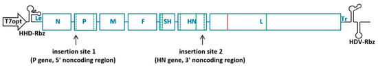 Figure 1)); (b) insertion of an ATU at insertion site 1 and an 84-nucleotides long random sequence at insertion site 2 (located in the HN gene 3′ NCR); (c) replacement of L-Zagreb consensus sequence with alternative synonymous sequences.