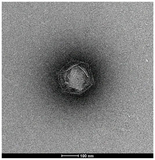 Electronic microscopy observation of negatively stained Kaumoebavirus LCC10.