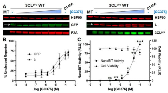 3.2. The Luciferase Complementation Assay Accurately Reflects Concentration-Dependent Inhibition of SARS-CoV-2 3CLpro-Mediated Cleavage