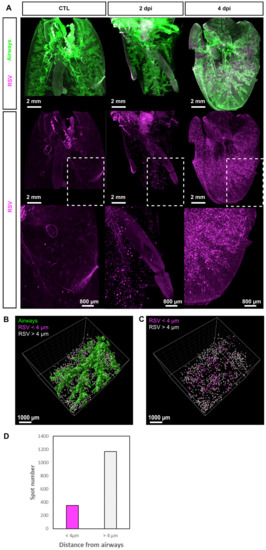 Furthermore, 3D reconstruction of the vascular, neuronal or airway networks in undissected lungs could also trigger the discovery of discrete and/or complex physiopathologies associated with RSV infection. Finally, these approaches open the way for the study of the RSV infection in different tissue environments with respect to its physiological contexts (newborns/adults—immunocompromised or auto-inflammatory status).