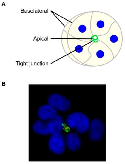 In cell culture-based studies of liver functions, researchers are aware of the importance of hepatocyte polarity. Various human polarized liver cell lines were generated, such as HepG2 and HepaRG (reviewed in Reference [4]). Moreover, human-derived induced pluripotent stem cells [9], human fetal liver cells [10], and bile duct cells isolated from biopsy samples [11] were cultured in extracellular matrices, such as Matrigel and inverted colloidal crystal scaffold, to generate hepatic organoids. The organoids performed liver functions upon transplantation into mice [9]. Lineage and polarity markers, gene expression profiling, and electron microscopy were used to assess differentiation status, polarity, and the degree of similarity between the in vivo systems and the liver [4,12,13,14,15,16,17]. Currently, researchers are exploring the use of the organoids in examining liver toxicity of drugs prior to clinical trials [18,19].