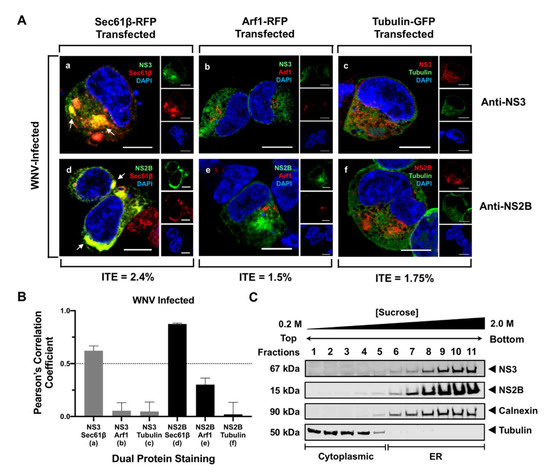 3.1. NS3 and NS2B Localize to the ER in WNV-Infected Cells