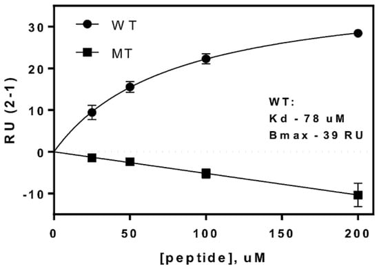 3.3. Surface Plasmon Resonance Confirms the Modular VP40 PPxY/SMURF2 WW Domain Interaction