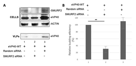 3.6. Expression of Endogenous SMURF2 Is Important for Efficient Egress of eVP40 VLPs