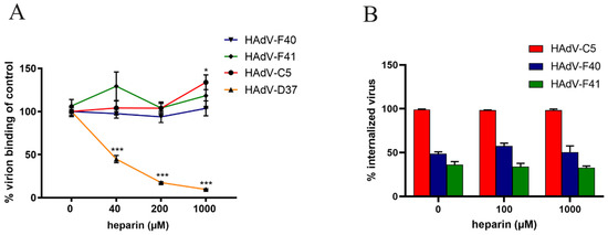 3.4. HAdV-F40 and -F41 Binding to and Uptake in A549 Cells Is Not Affected by Heparin