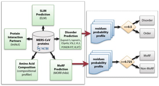 We utilized multiple computational approaches to analyze the intrinsic disorder predisposition of the MERS-CoV proteome and peculiarities of disorder distribution in the amino acid sequence of each protein. Figure 1 shows the methodology used in this study.