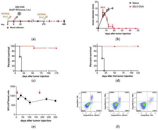 Altogether, these results show that a single immunization with IDLV-OVA induced a strong, persistent, and functional CD8+ T cell-mediated OVA-specific response able to eradicate a preexisting large tumor mass as well as to generate memory cells able to prevent potential relapses.