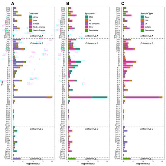 | Enterovirus D (n = 4) | EV-D68, EV-D70, EV-D94, EV-D111 |