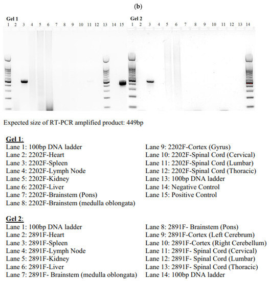 - Li, Z.; Yu, M.; Zhang, H.; Wang, H.-Y.; Wang, L.-F. Improved rapid amplification of cDNA ends (RACE) for mapping both the 5′ and 3′ terminal sequences of paramyxovirus genomes. J. Virol. Methods 2005, 130, 154–156. [Google Scholar] [CrossRef]